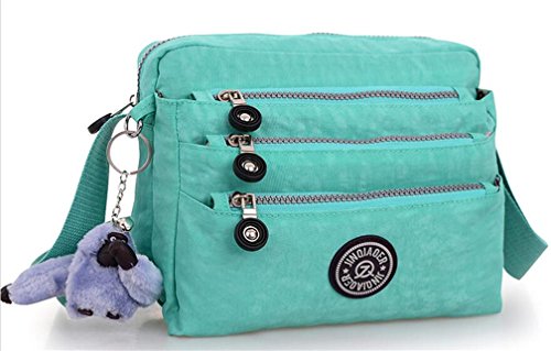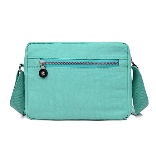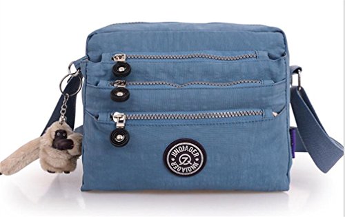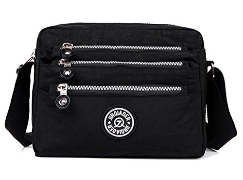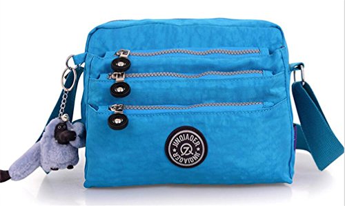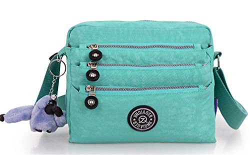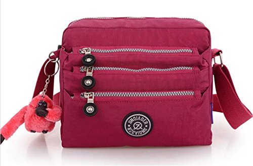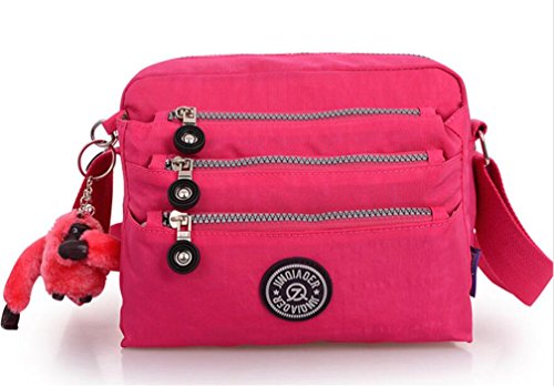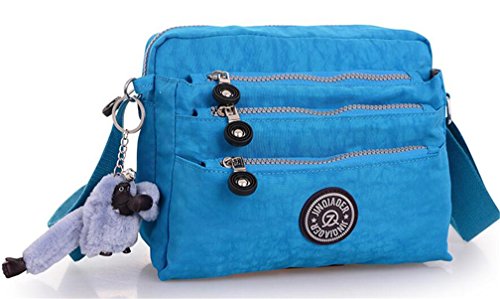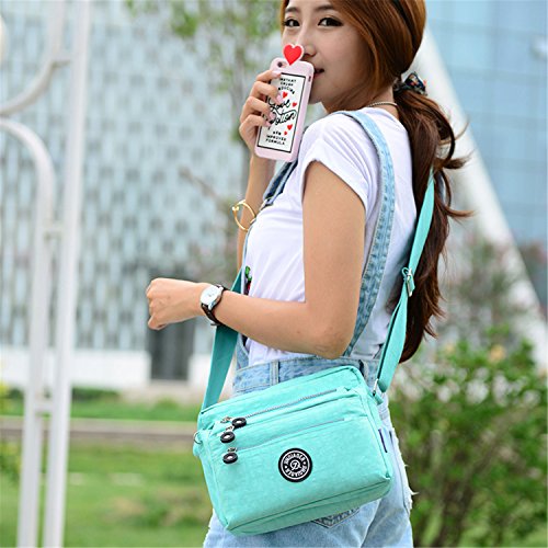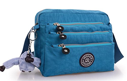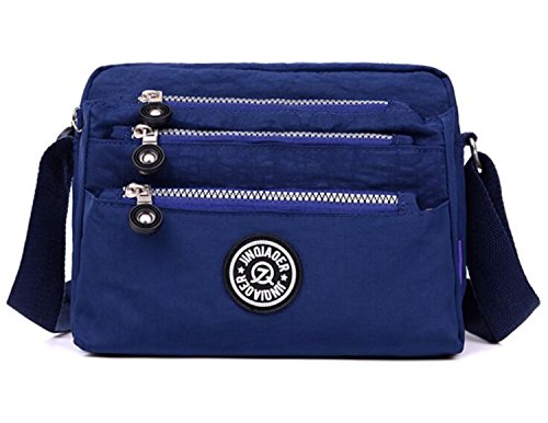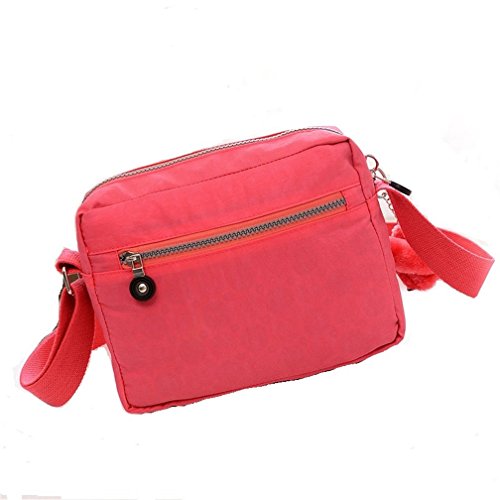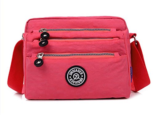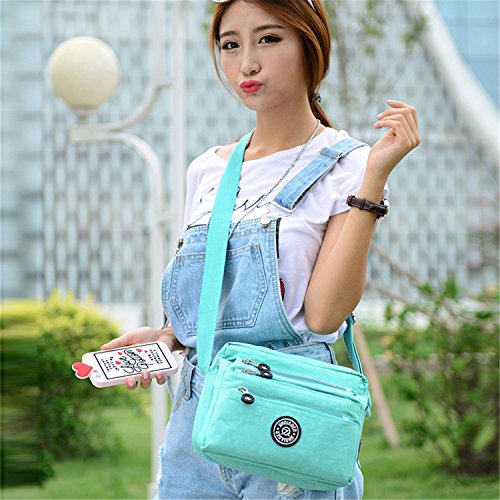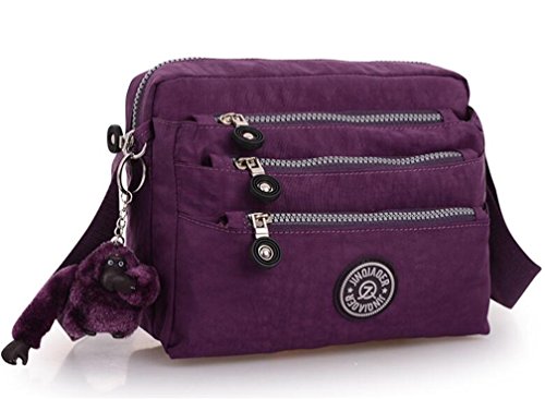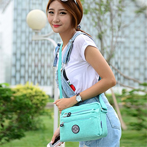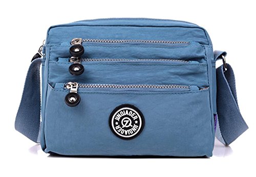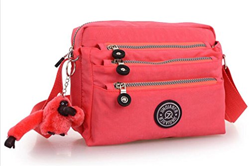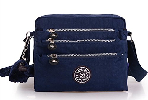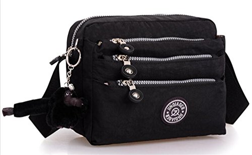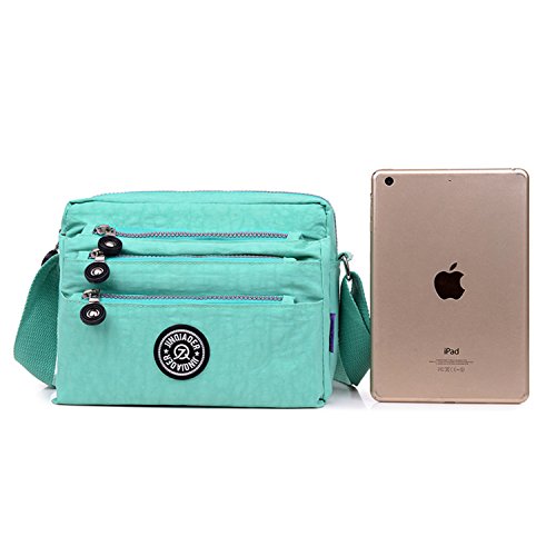 :Material:Durable and water-resistant Nylon Closure: zipper Adjustable crossbody strap Dimension : 9"L X 6.7"H X 3.1"W,it fits iPad mini,notebook,cellphone,cosmetics and so on. Relaxed and casual style using for: School, Excursion,Travel,Going out,window shopping etc Main top zipped access to main compartments,comes with one zipped security pocket£≫3 front zipper pockets and back zipper pocket. Feature:Water-resistant Convenient Comfortable to wear in 2 ways: shoulder bag and crossbody messenger Occassion:Travle,date,work and ect.