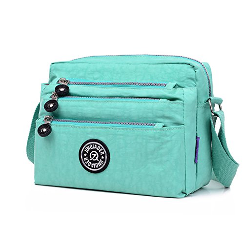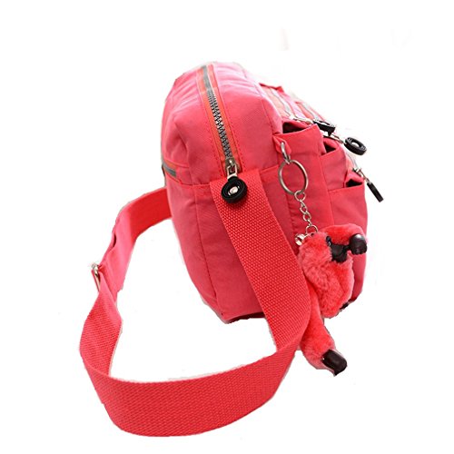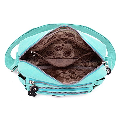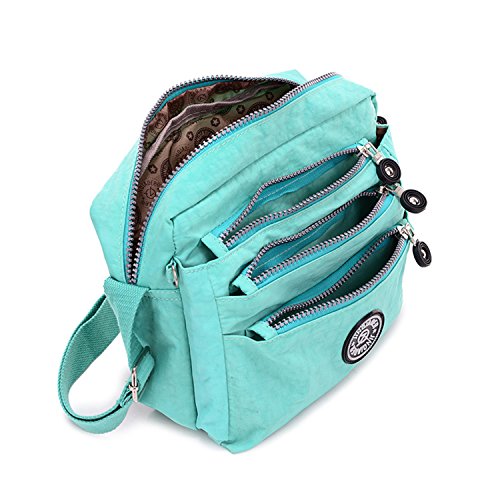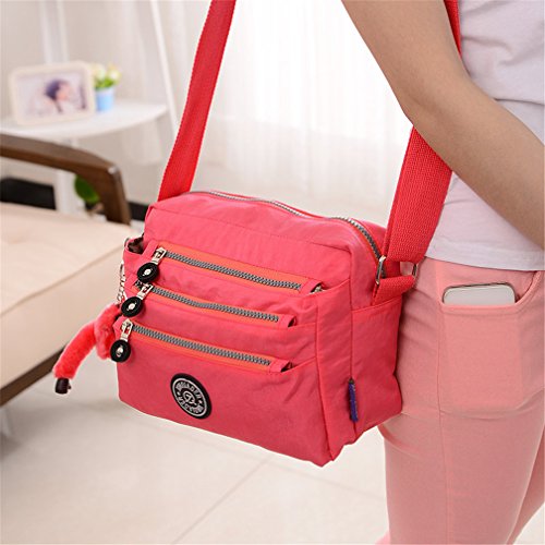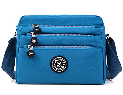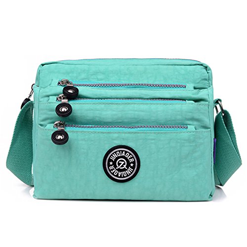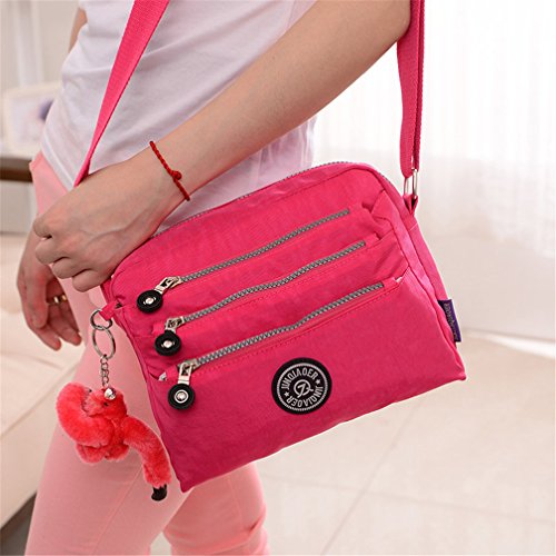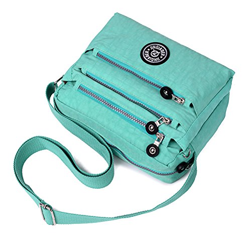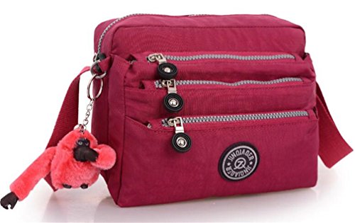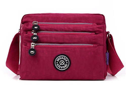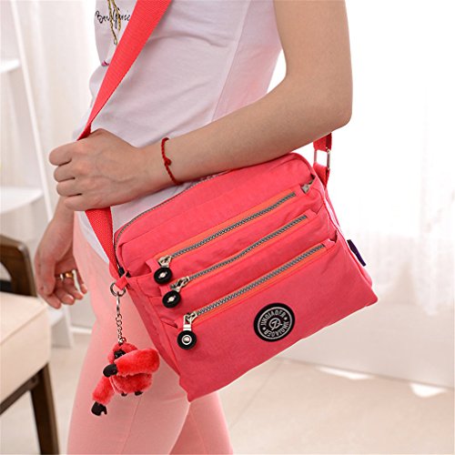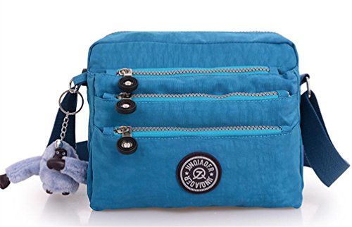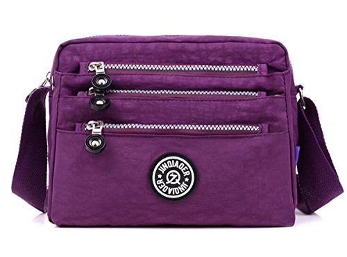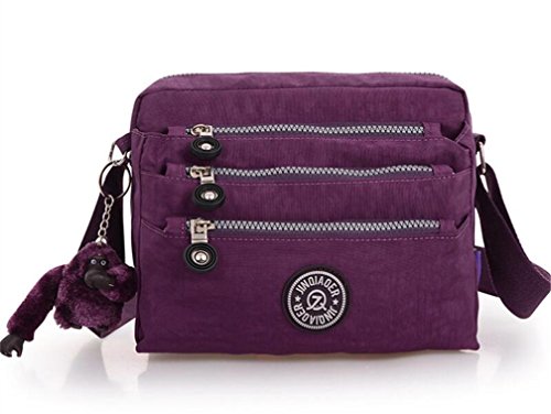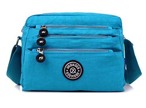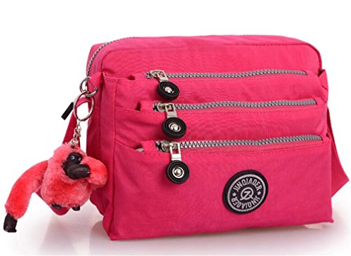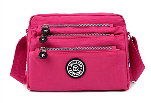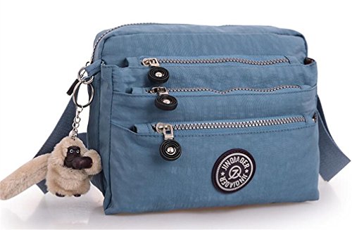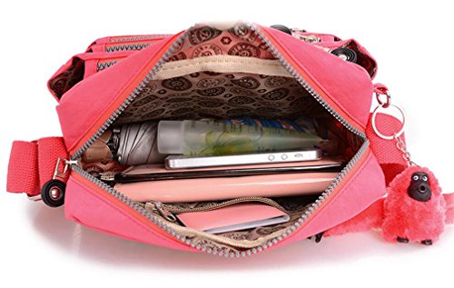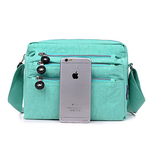 :Material:Durable and water-resistant Nylon Closure: zipper Adjustable crossbody strap Dimension : 9"L X 6.7"H X 3.1"W,it fits iPad mini,notebook,cellphone,cosmetics and so on. Relaxed and casual style using for: School, Excursion,Travel,Going out,window shopping etc Main top zipped access to main compartments,comes with one zipped security pocket£≫3 front zipper pockets and back zipper pocket. Feature:Water-resistant Convenient Comfortable to wear in 2 ways: shoulder bag and crossbody messenger Occassion:Travle,date,work and ect.
