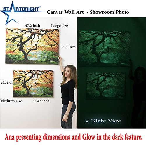 Startonight Canvas Wall Art Birch Trees Forest, Trees Glow in the Dark, Dual View Surprise Artwork Modern Framed Ready to Hang Wall Art 15.75 X 47.2 Inch 100% Original Art Painting