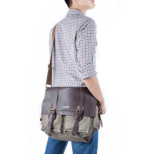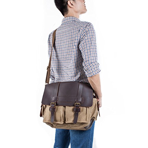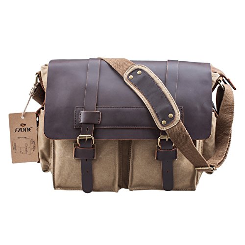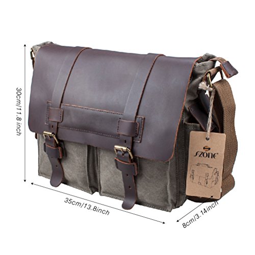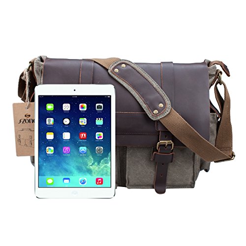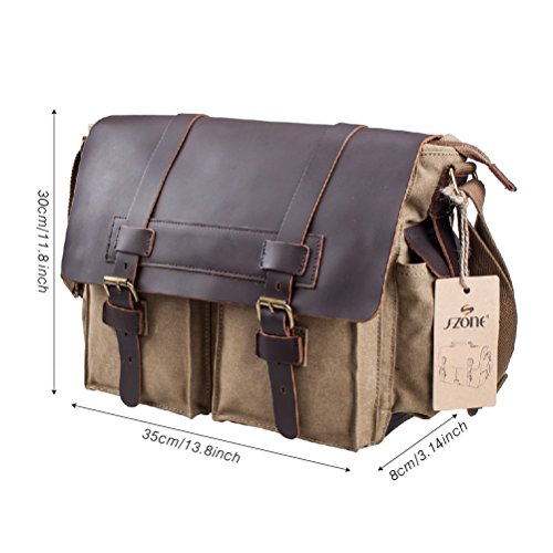 -. Binding : Personal Computers -. Brand : S-ZONE -. Department : unisex-adult (novelty and lage only) -. Feature : Materials: High density washed canvas ,Top quality Crazy Horse leather Trim / Dimensions: 11.8(H)*13.8(L)*3.14(W)inch, 11.8 inch H including a 1.5 inch gap between top and zipper / Magnetic quick snap buckles for easy to access / Easy to carry 13 inch laptop, Tabloid sized Magazines, books and iPad / Adjustable shoulder strap -. Label : Xuey -. Manufacturer : Xuey -. ProductGroup : PC Accessory -. ProductTypeName : CARRYING_CASE_OR_BAG -. Publisher : Xuey -. Studio : Xuey -. Title : S-ZONE Retro Canvas Leather Messenger 13-inch Laptop Shoulder Bag