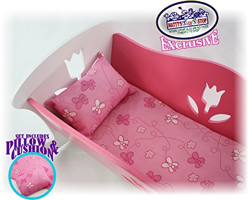 Studio : Homeware Publisher : Homeware Binding : Toy Product Description Matty's Toy Stop 18 Inch Doll Furniture Wooden Doll Rocking Cradle (Crib) with Pink/White Paint, Pink Pillow, Pink Cushion and Beautiful Floral Cutouts, makes the perfect addition for any little princess! Awesome cradle for any baby doll, up to 19" in length. Your favorite doll will enjoy this set! For Ages 3 and up - Cradle measures 20" Long x 12.75" Wide x 10.5" Tall 0