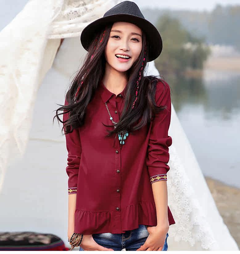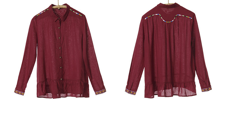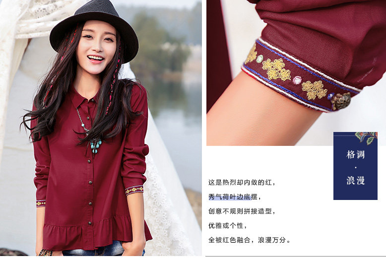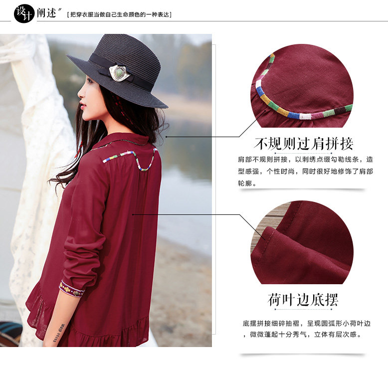 刺绣不规则拼接长袖衬衫