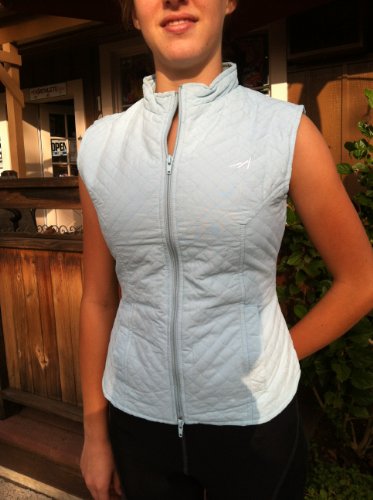 Binding : Apparel Product Description Feather light quilted micro fiber polyester shell is warm, durable, wind water resistant. 2 front side pockets. Rear zip pocket. 2-way front zipper. Ultra tailored for superior and very flattering fit. Sky Blue or Midnight Black. 0