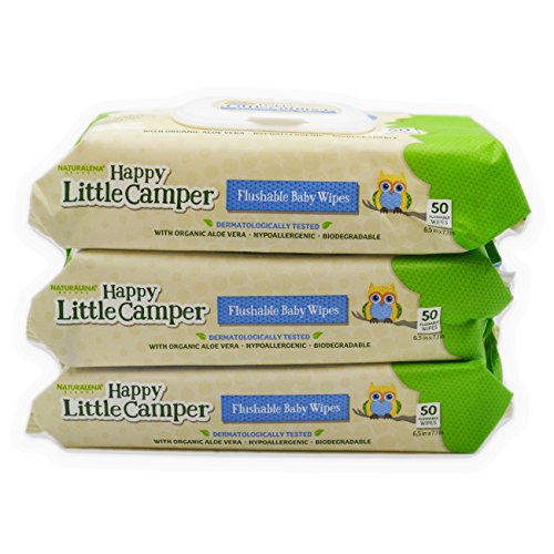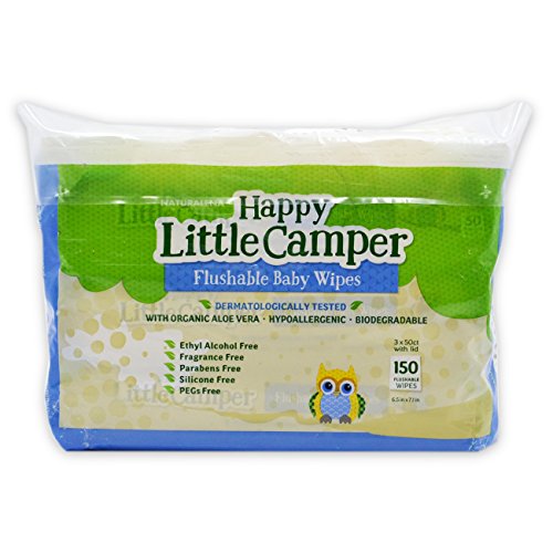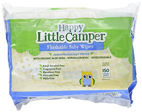 Happy Little Camper Flushable Baby Wipes with Organic Aloe, Septic Safe, 150 Count