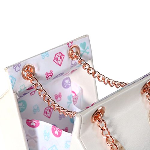 -. Feature : Officially Licensed Tokidoki Product / Rose Gold Tone Hardware and Chain Strap (non-removable) / Tokidoki Enamel Name Plate and Tokidoki Monogram P.R.Int Lining / Cute Strawberry Milk Graphic On The Back / Size (approximate): 4" W x 8.5" H x 4" D; Strap length (shoulder length): 11"; Strap length (cross body, fully extended): 22"