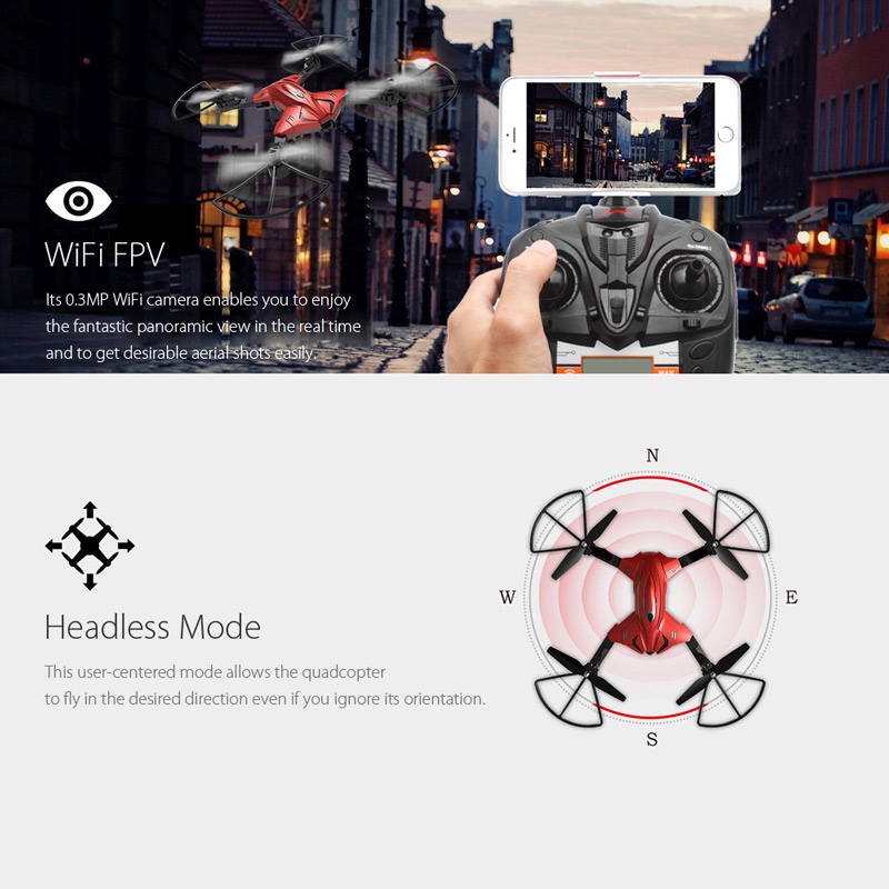 - WiFi FPVIts WiFi connection and 0.3MP camera allow you to experience the fascinating aerial view.