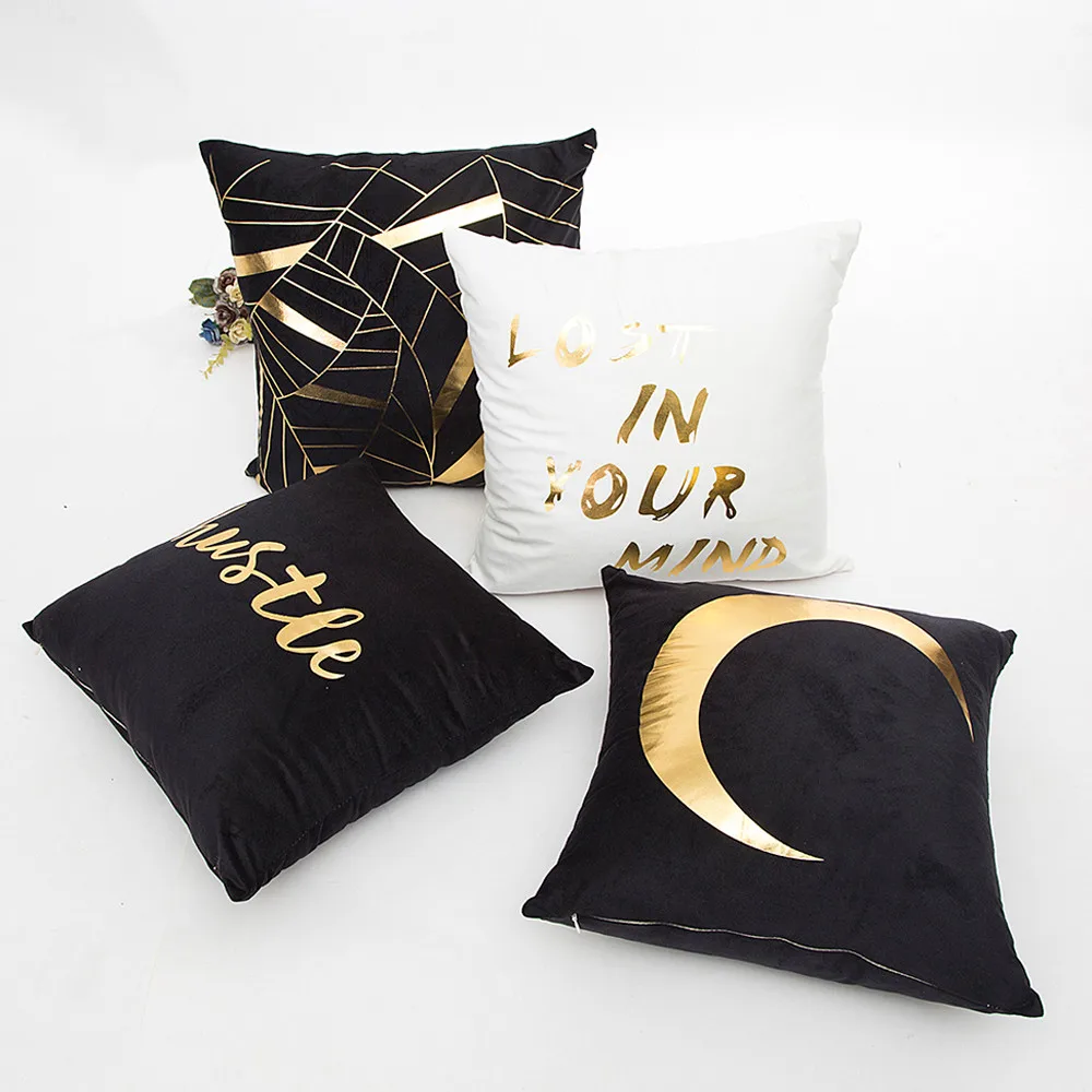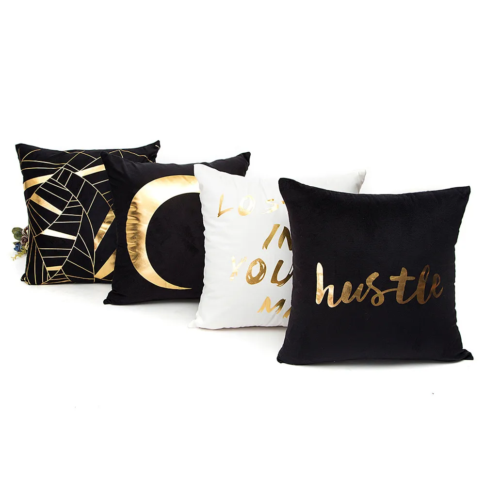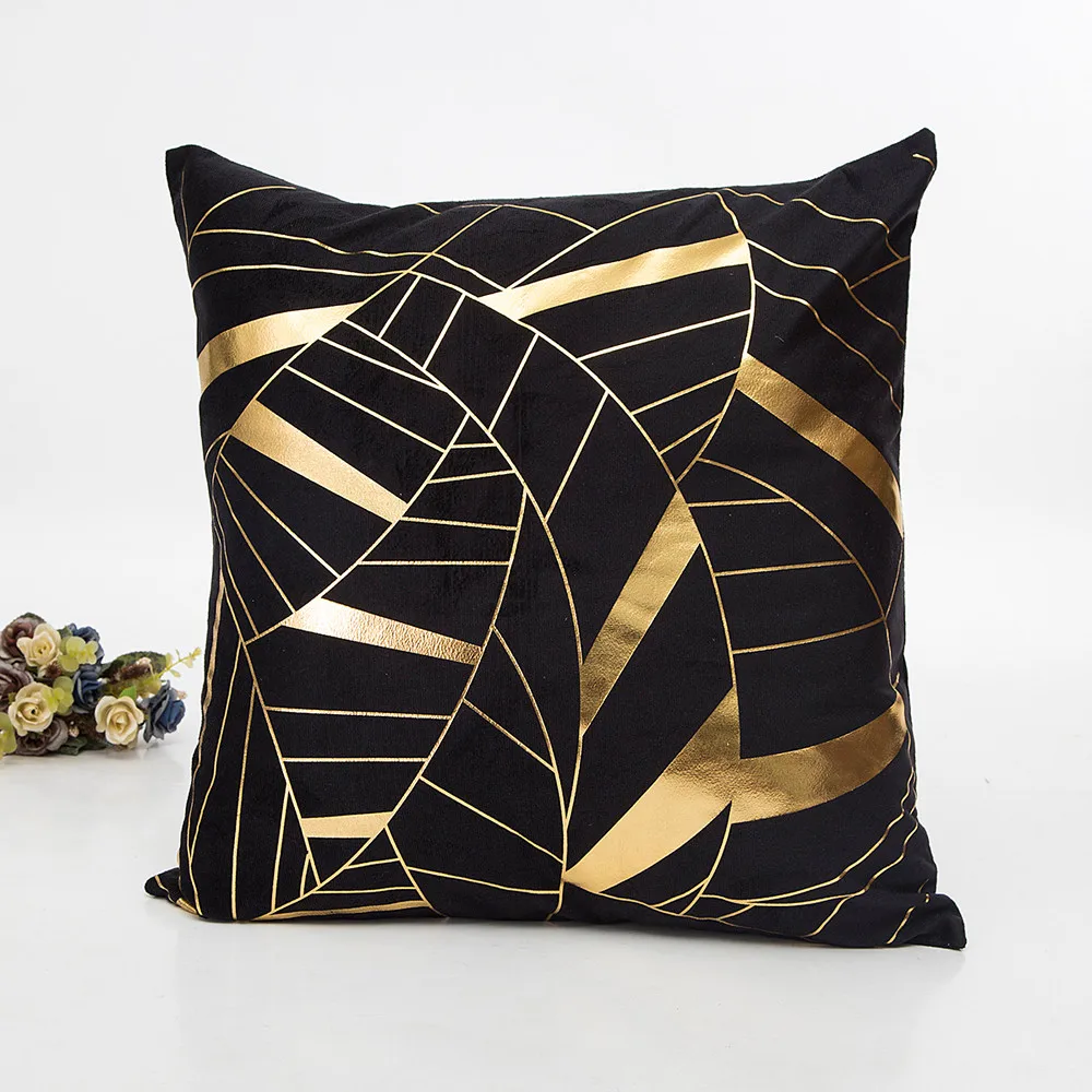 Gold Foil Printing Pillow Case Sofa Waist Throw Cushion Cover Home Decor