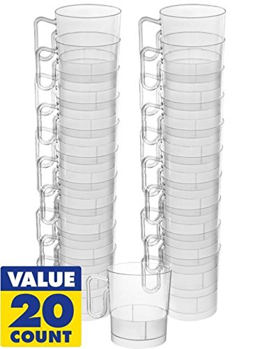 Amscan Reusable Plastic Party Coffee Cup Drink Ware (20 Piece), 8 oz, Clear
