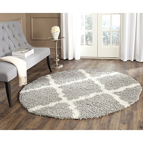 Safavieh Dallas Shag Collection SGD257G Grey and Ivory Round Area Rug, 6 feet in Diameter (6' Diameter)