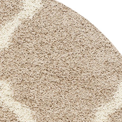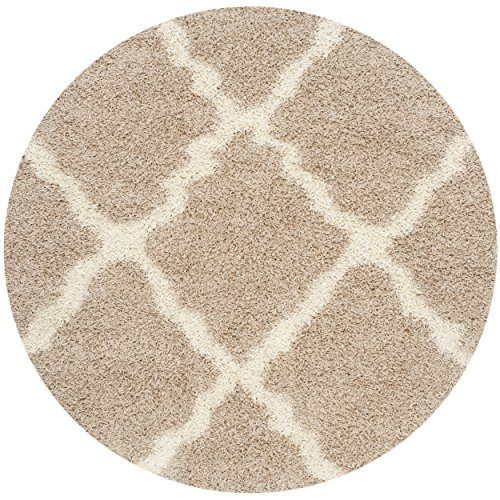 Safavieh Dallas Shag Collection SGD257D Beige and Ivory Round Area Rug, 6 feet in Diameter (6' Diameter)
