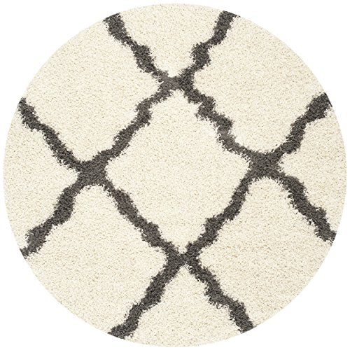 Safavieh Dallas Shag Collection SGD257H Ivory and Dark Grey Round Area Rug, 6 feet in Diameter (6' Diameter)
