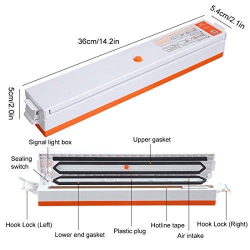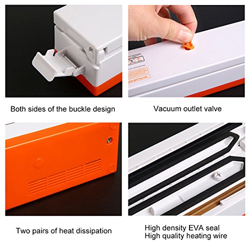 LOW NOISE&CLEAN EASY:lightweight&compact design,13.7 x 2x 2 inches,Save more space,Anytime, anywhere can carry,packing machine seal more bags in one time to save time,removable strips is easy for regular cleaning.