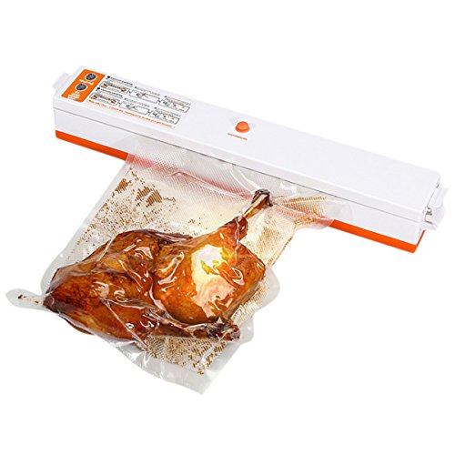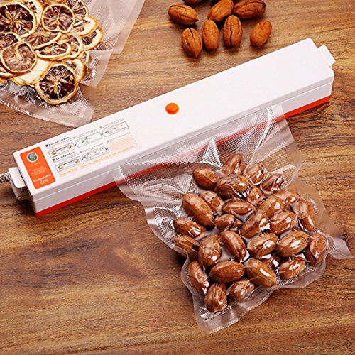 Automatic Vacuum Sealer Food Saver - Easy to Carry Food Vacuum Sealer Best for Food Preservation and Storage Starter Kit 15pcs Sealer Bags for Free Gift ,One Touch Operation 110V(Orange)
