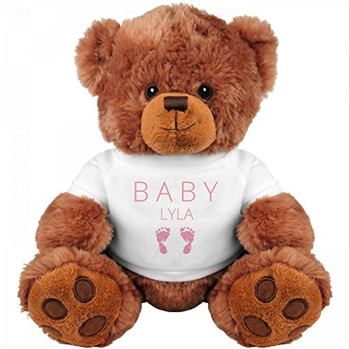 -. Feature : Custom made and P.R.Inted on demand when ordered / Sits roughly 8 inches high / Super soft fur. Soft embroidered eyes and nose. / Mini t-shirt is removable / Know someone who is having a little girl? Get them this adorable plush teddy bear for baby Lyla. This cuddly bear is wearing a shirt that has her name and tiny footP.R.Ints on it. Makes for a great gift!