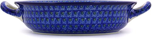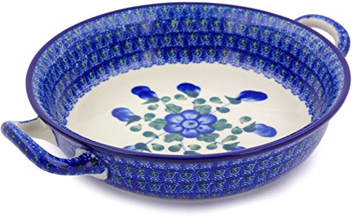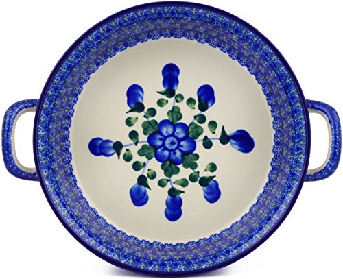 Studio : Ceramika Artystyczna Publisher : Ceramika Artystyczna Product Description Polish Pottery Medium Round Baker with Handles made by Ceramika Artystyczna, Blue Poppies Theme Certificate of Authenticity and origin is included Dimensions: 2.05" high, 8.11" wide, 9.92" long, (max. outside edge or handle) Capacity: 29oz (filled to the rim) Polmedia Polish Pottery Stoneware is: * Hand crafted and hand painted in Boleslawiec, Poland * Microwave safe, dishwasher safe, oven safe up to 480 F, freezer safe * Lead and cadmium free * Crack and chip resistant * Intended for everyday use, easy to clean * Highly collectable About Polish Pottery Polish pottery is known for its versatility in the kitchen and on the table. It is safe for use with food in the microwave, freezer, oven and dishwasher. Polish stoneware is resilient to abrasives making it durable and resistant to scratching or chipping. It distributes heat evenly for perfect baking and is also nonstick for easy clean-up, making it easy to care for. The bright patterns never fade, and are offered in thousands of variations to mix and match. It is this combination of function and beauty that makes Polish pottery so appealing. The pottery is fired in electric and gas kilns at temperatures exceeding 2200 degrees Fahrenheit. This results in a stoneware that is meant to resist aging and provide lasting beauty that stands the test of time. Polish stoneware is lead and cadmium free. Polish Pottery is hand crafted and hand painted in the Boleslawiec region of Poland. This region is famous for its naturally found white clay which artisans have used for centuries to craft this durable and beautiful stoneware. Each piece of pottery is carefully formed and painted by hand to ensure that exceptional attention to detail is paid to each piece. The most beautiful and intricate patterns are called UNIKAT patterns. These patterns bear the artist's signature. 0