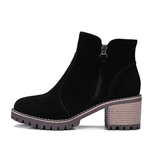 (BalaMasa)/Women's/Lace-Ups/DIRECT FROM USA/BalaMasa Womens Hounds-Tooth Chunky Heels Formal Suede Boots ABL10490
