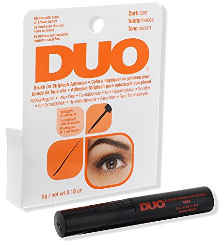 DUO Brush-on Lash Adhesive Dark - Latex and Formaldehyde Free! This hypoallergenic, long-lasting adhesive is formulated with Vitamins A, C E and is also latex and formaldehyde free.? Lashes stay on for up to two weeks using this waterproof formula. Customize your look, from natural to glamorous, with the easy-to-use dropper bottle that eliminates any mess or clumps. To remove lashes, simply use baby oil and a Q-Tip to dissolve adhesive. To use, simply apply a think line of Duo Lash Adhesive along the lash band.? Wait 30 seconds for the lash glue to set.? Apply lashes as close to your eyelid as possible.? Secure lash band by pressing onto lash line.? This DUO Brush-on Lash adhesive?dries dark and blends well with black or brown lashes. For best result, apply full makeup first and lashes last. 0 |