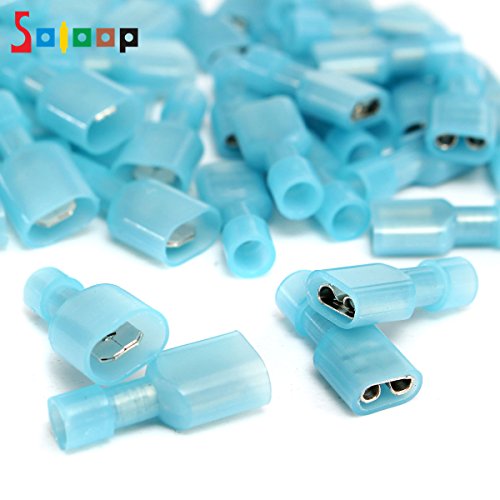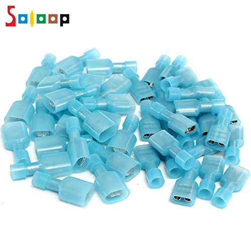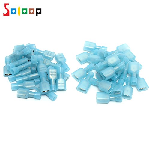 SOLOOP 50pcs Female & Male Fully Insulated Wire Terminals Connector Nylon Spade Connectors Blue