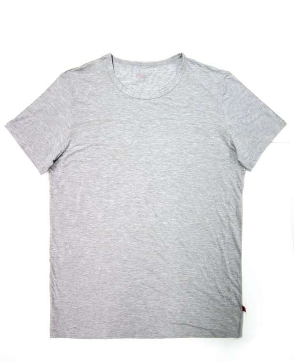 멜란지 원단의 티셔츠로 뒤판 배트윙 피스 프린트를 적용한 디자인.