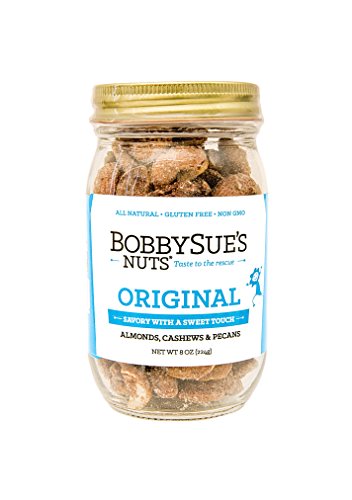 BobbySue's Nuts Original Style Nuts – All Natural Savory Mix of Almonds, Cashews, Pecans (8 Ounce)