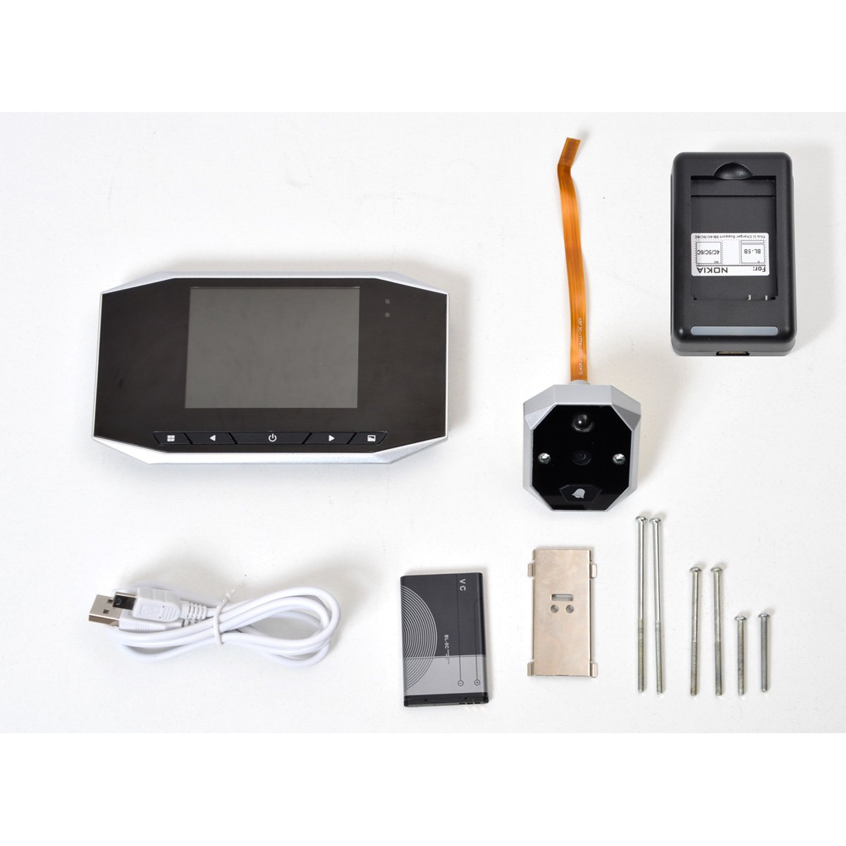 【Digital Zoom】 4 times 【Viewing Angle】 120 degrees 【Motion Detection】 Within 3 Meters 【Corresponding Size】 Door Hole Diameter: 12 ~ 46mm Door Thickness: 35 ~ 120mm 25 Door Phone Sounds 【Warranty Period】 1 year