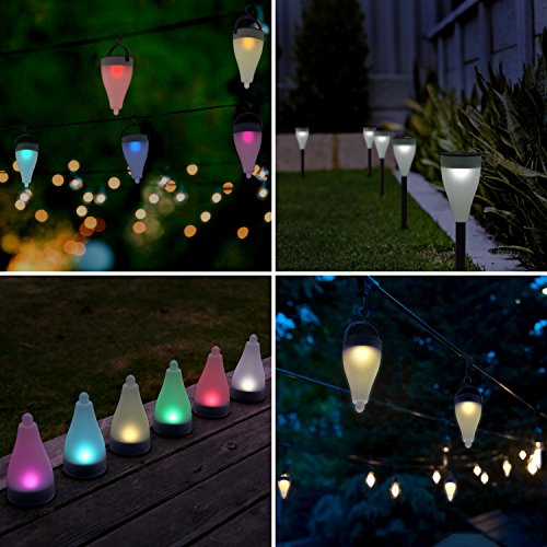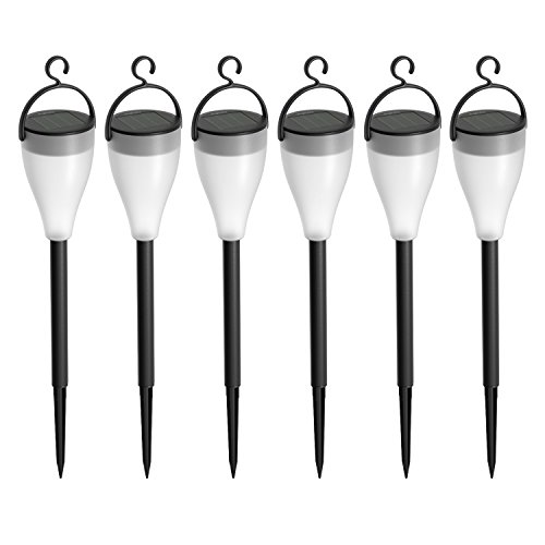-. Feature : Rechargeable Solar Lamp. Rechargeable Ni-MH Battery (200mAh) enables the solar path lights to work around 10-12 hours after fully charged / Multi-Color Lights. This garden light with 3 lighting modes (cycle / smart / lock) and 7 colors can provide more choices to meet your desire / Easy & Multiple Installation. 3 ways to install the light: insert the light into the ground, hang it on some places where can get the sunlight during the daytime, or make the lights sit on the ground or table as a mood lamp / Light Sensor. The built-in light sensor makes the pathway lights automatically turn on at night and turn off at dawn / Wide Application. Pack of 6 units with colorful light is perfect for indoor and outdoor decoration. Ideal for home, balcony, fence, driveway, Christmas tree decoration