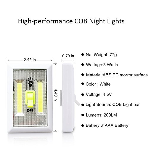 - SUPER BRIGHT & Updated - Equipped with new COB LED technology,the COB Switch Light can output 200 lumens of intense light.This Updated COB Switch Light uses luminous material that allows you to easily find it in the dark.