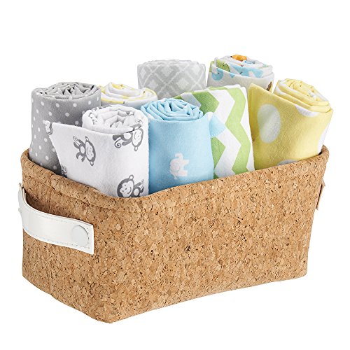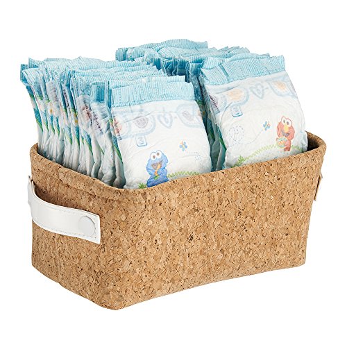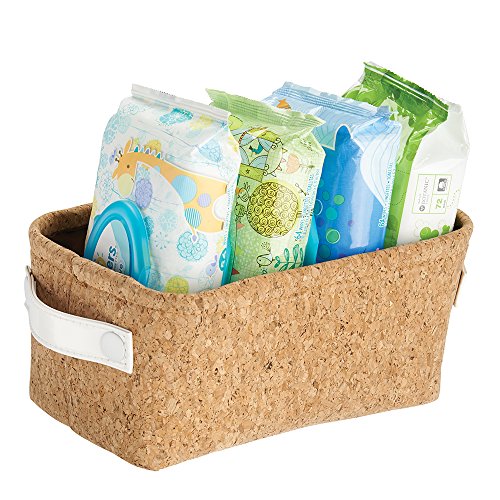 mDesign Baby Nursery Organizer Storage Bin for Towels, Books, Diapers, Wipes - Cork/White