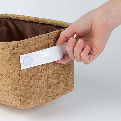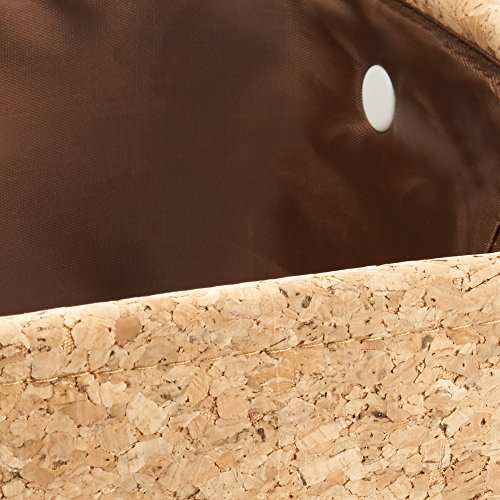 Made of real cork with vegan patent leather handles; Interior is fully lined in contrasting deep brown fabric that can easily be wiped clean