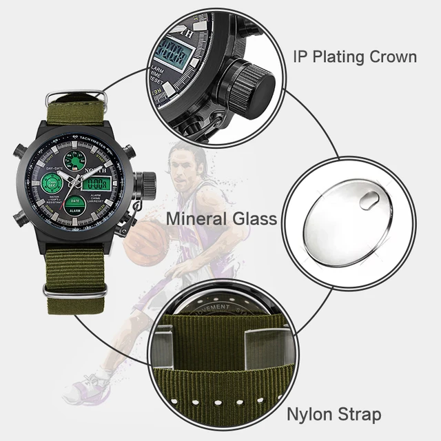 | [해외] 럭셔리 스포츠 시계 남성 30 메터 방수 LED 디지털 군사 시계 캐주얼 전자 시계 패션 남성 Relogio Masculino |