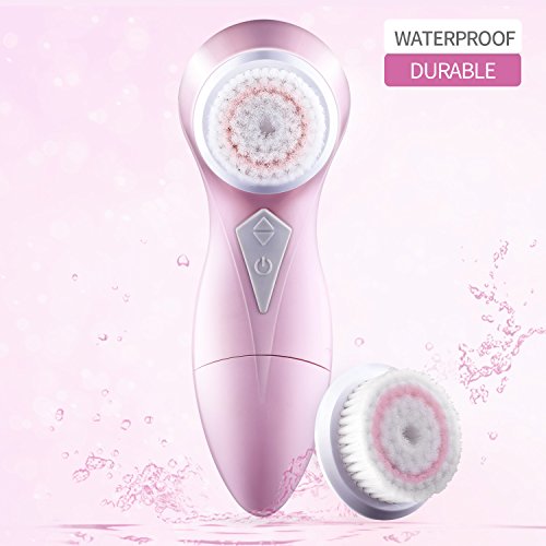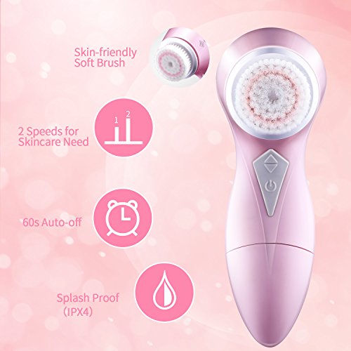 Electric Facial Brush Ultrasonic Vibration Face Cleansing Brush with 2 Brush Heads 60s Auto-off Makeup Remove Pore Cleanser, Pink. Hepburn.S