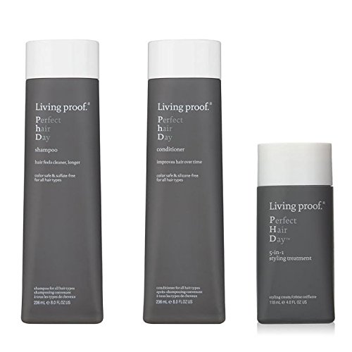 -. Title : Living Proof P.e.r.f.e.c.t Hair Day Shampoo 8 oz. Conditioner 8 oz. and 5-in-1 Styling Treatment 4 oz set