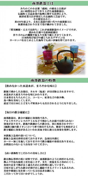| 素材・材質 | 南部鉄鋳物 |