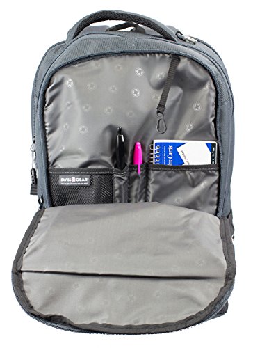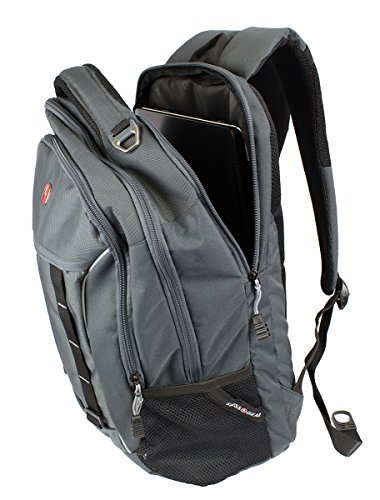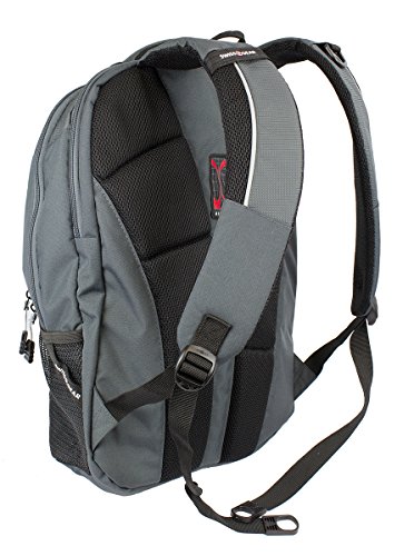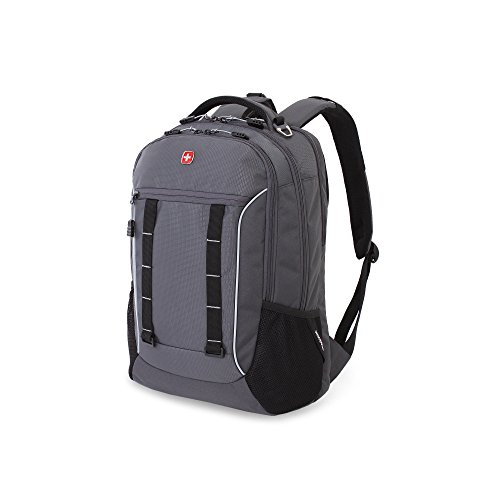 -. Feature : Head back to school, around town or on your next weekend adventure in style with the Swiss Gear grey laptop backpack. / Large main compartment with built-in padded, laptop sleeve designed to fit most 15" portable computers / Integrated, padded tablet pocket and 2 mesh side pocket drink holders. / Padded, Airflow back panel with mesh fabric for superior back ventilation and support. / Organizer pocket with key clip and divider. Ergonomically contoured, padded shoulder straps with breathable mesh. - 19"
