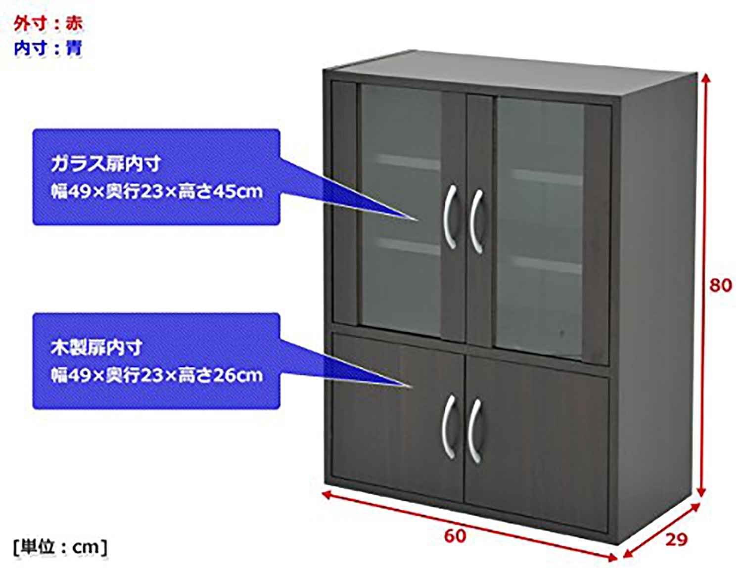 【JAN Code: 4983771836749】 ● Body size: Width 60 × Length 29 × Height 80 cm Weight 17 kg ● Material: Main body: Printed paper cosmetic fiberboard door: Glass ● Country of origin: Indonesia ● Assembly ● Assembly time: About 40-