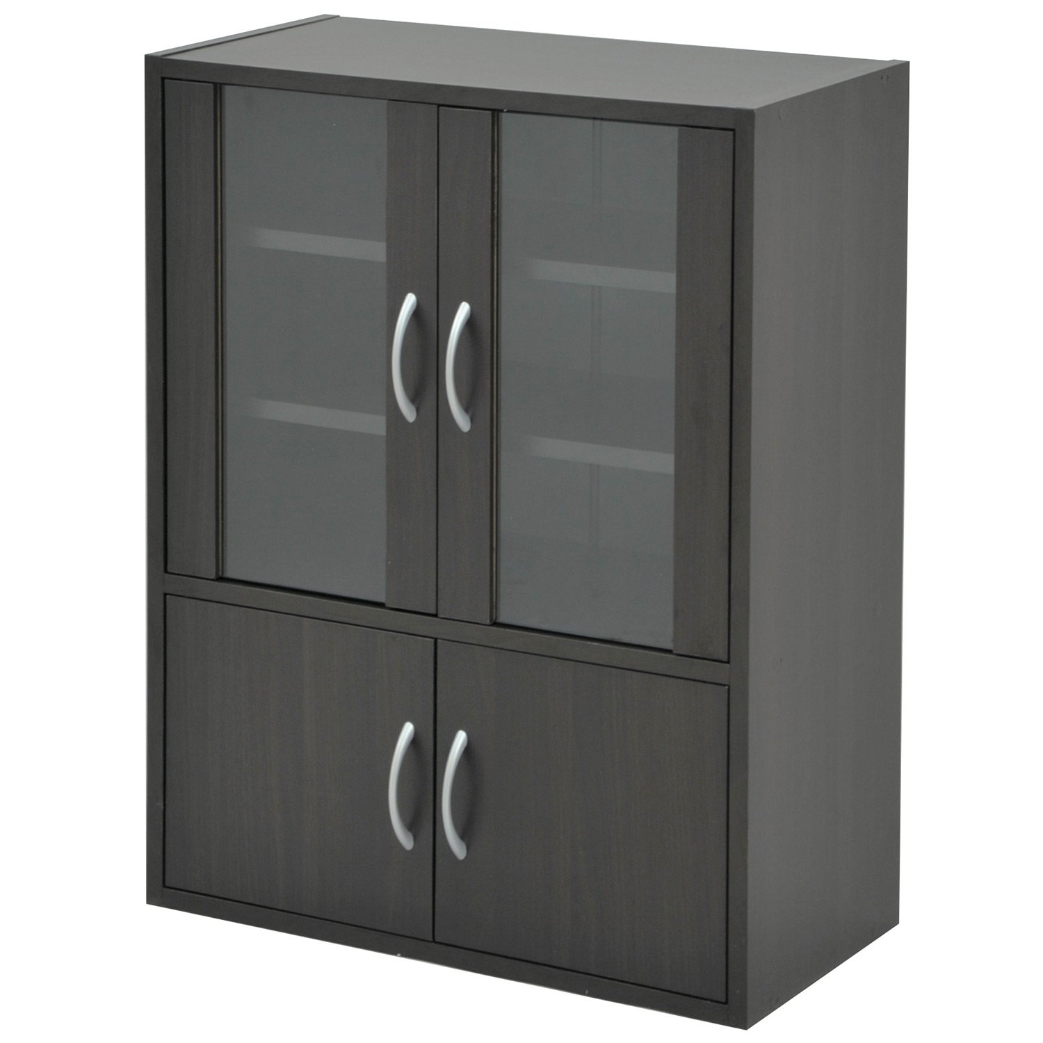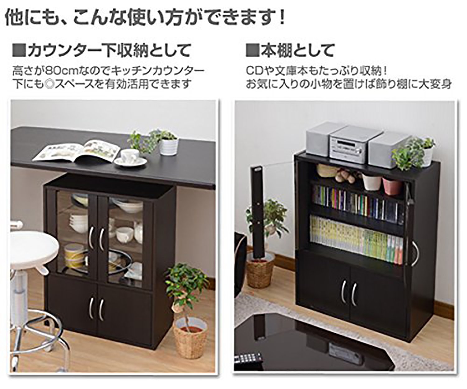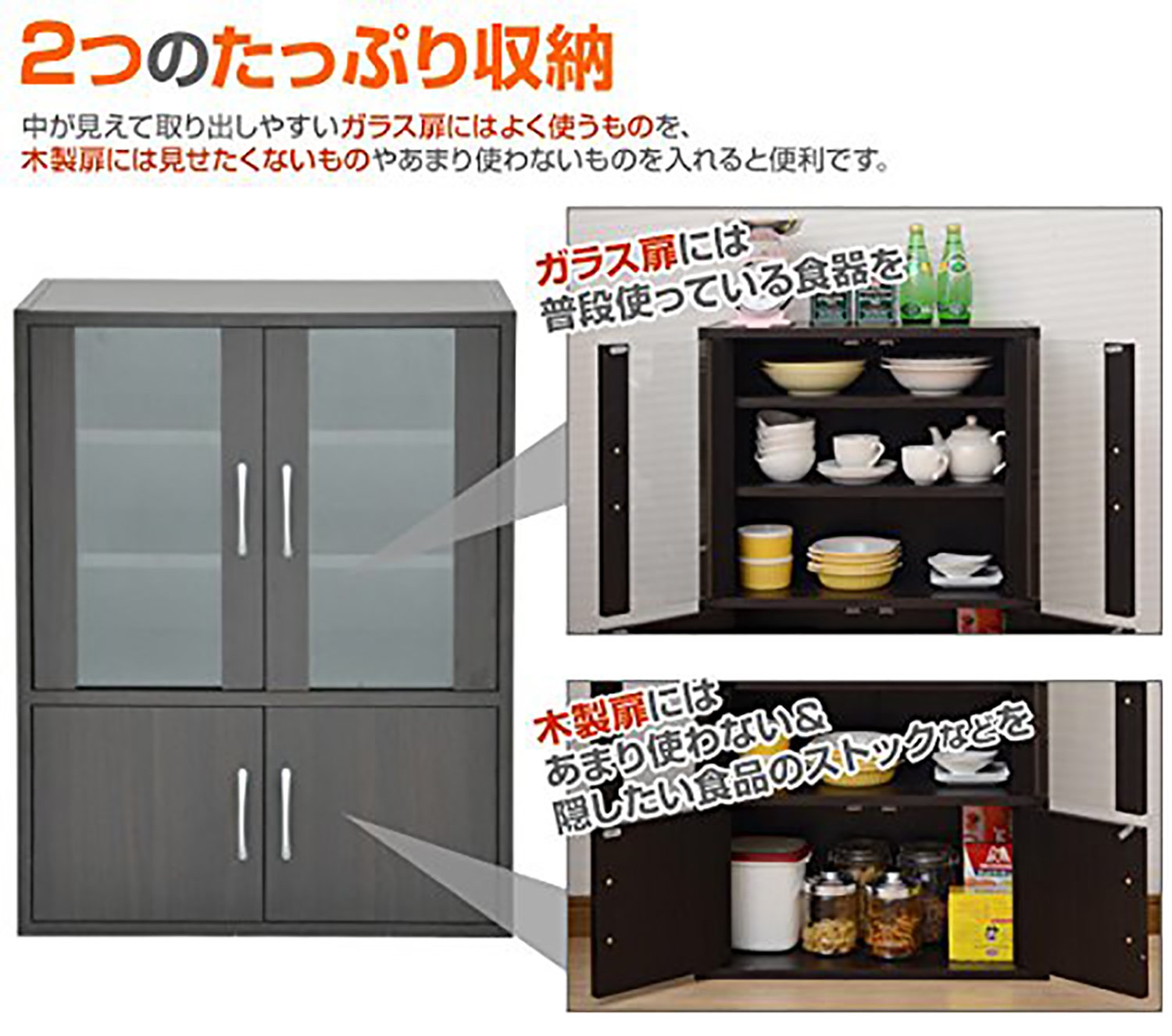 60 minutes ● Glass cabinet convenient as cupboard and cabinet ● Glass door inside dimension: width 49 depth 23 height 45 cm ● 2 mobile shelves (approx 3 cm pitch, 10 step height adjustment) ● Lower door inside dimension: width