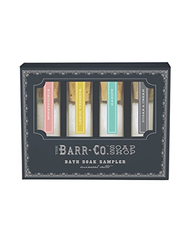 -. Binding : Misc. -. Brand : Barr -. EAN : 0659682144252 -. Feature : Includes four 1 oz. tubes of bath soak in honeysuckle, marine, lemon verbena and sugar & cream. / With essential oil - Our essential oil soak salts set feature natural rejuvenating and healing ingredients like mineral salt known to relieve stress and soothe both muscle aches and joint pain and Vitamin E for smooth glowing skin. / Assortment is a real treat and a perfect thank you for all your hard work and best of all four delightful scents you can experience / Quality you would expect form Barr, luxurious and wonderful -. IsAdultProduct : 0 -. Label : Barr -. Manufacturer : Barr -. MPN : 6400 -. PartNumber : 6400 -. ProductGroup : Beauty -. ProductTypeName : BEAUTY -. Publisher : Barr -. Studio : Barr -. Title : Barr Bath Soak Salt Samplers Ultra Lush Gift Set 4 All Natural Handcrafted Mineral Salts with Vitamin E and Essential Oils -. UPC : 659682144252