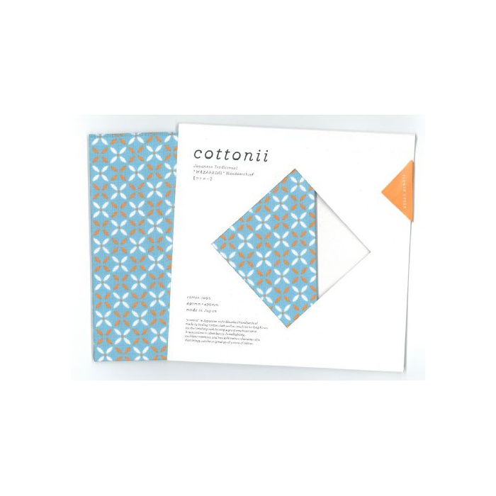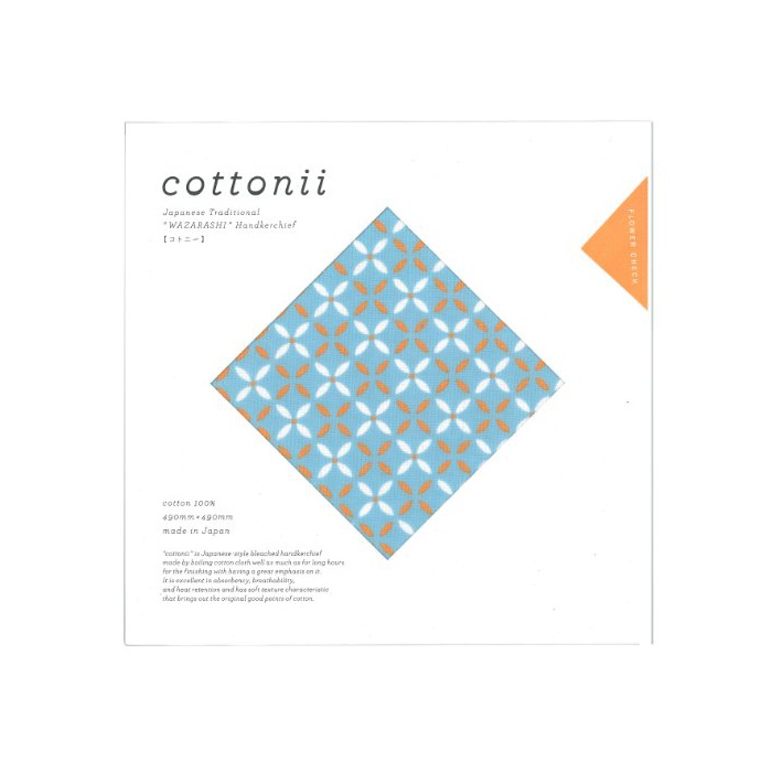 원본상품명: 宮本 和ざらしハンカチ 『cotonii』 フラワチェック オレンジブル 49×49cm