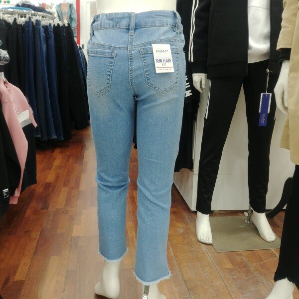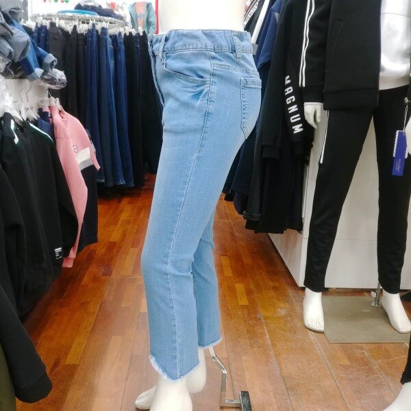 매력적인 아이스 블루 컷팅 바지입니다.세미 플레어 핏이 살짝 복고 느낌이 납니다.초여름까지 입을 수 있는 바지입니다.