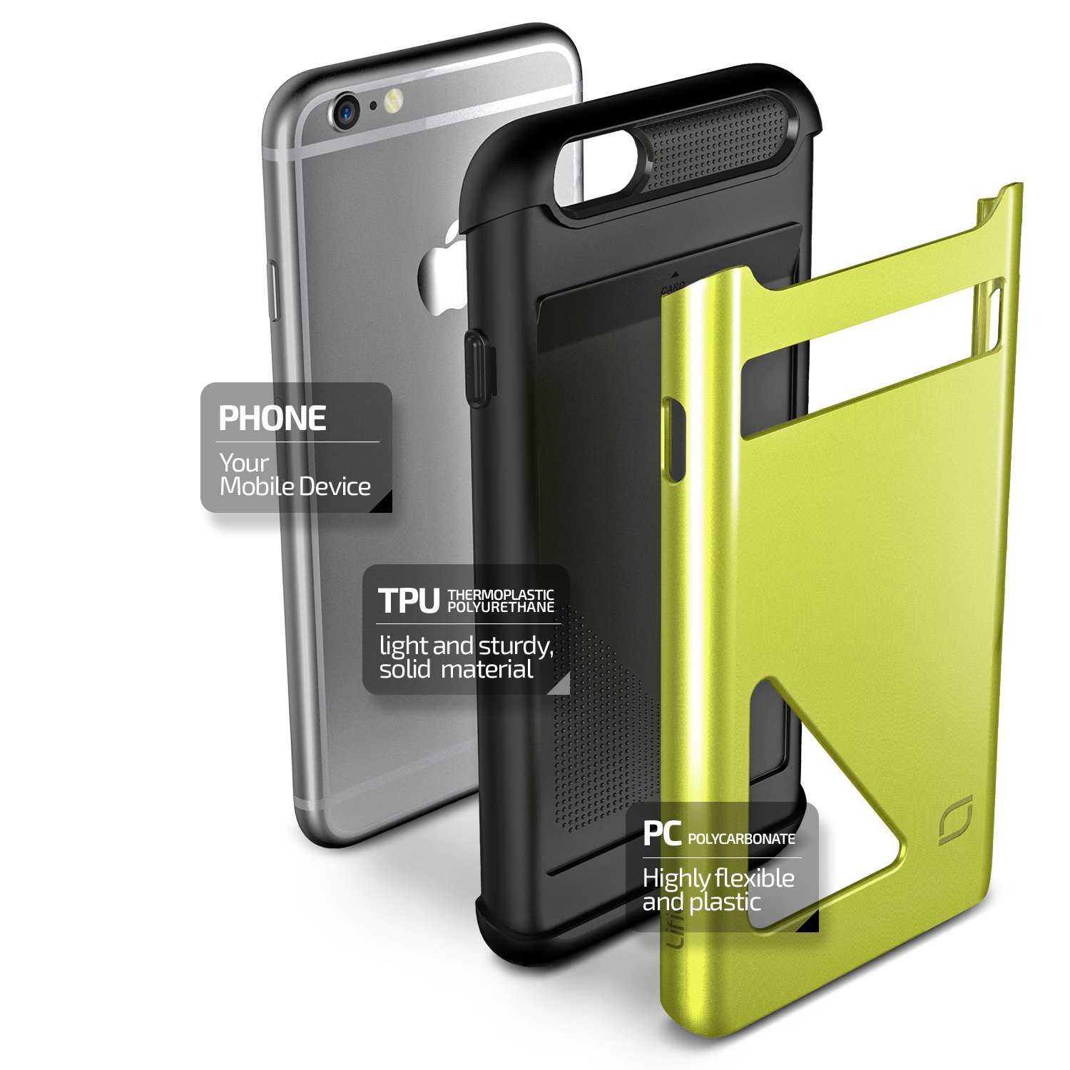 Back cover card case made by Lific for iPhone 6s / 6 Plus Shock-resistant double structure Shock absorbing cover