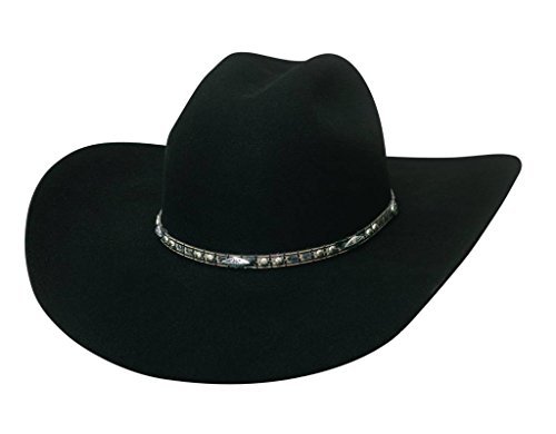 Studio : Bullhide Hats Publisher : Bullhide Hats Binding : Apparel Product Description Add a unique flare to your outfit when you have this stylish hat from Bullhide. This hat from Bullhide is made with premium wool, has a pinch front crown, a leather hatbad with silver toned rivets and diamond conchos, and a shape-able brim. Saddle up, grab your favorite hat from Bullhide, and hit the trails. 0