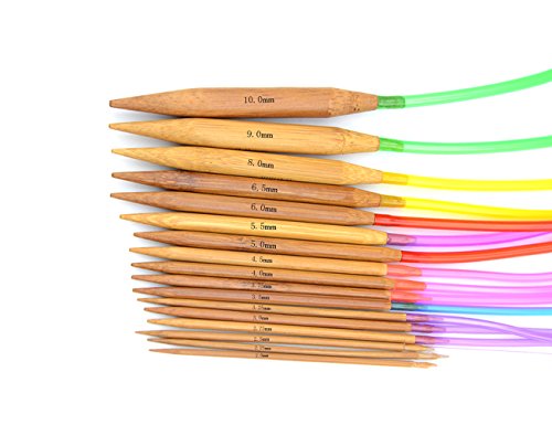 TOVOT 18 PCS 2.0 mm-10 mm 16 inch (40 cm )Circular Bamboo Knitting Needle set