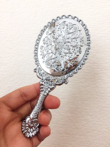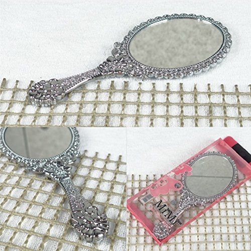 Sevenstars Decorative Vanity Portable Mirror Silver Tarnish Free Hand Held Pouch Size