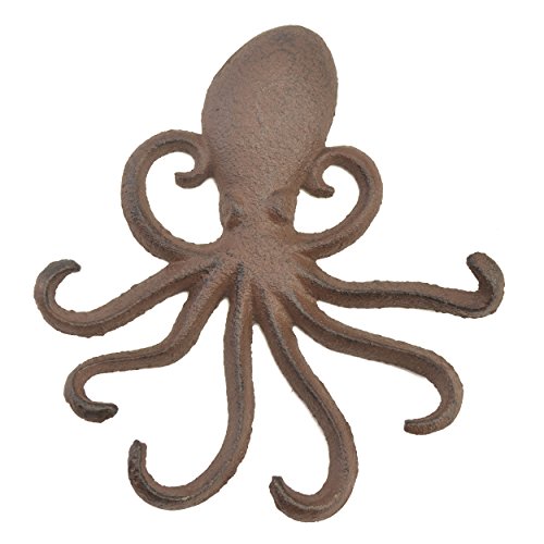 Cast Iron Wall Hook Octopus With 6 Hooks Rust Brown 6.75" Tall