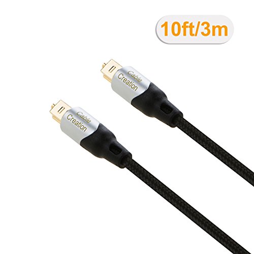 CableCreation 10 Feet Toslink Male to Toslink Male Digital Optical SPDIF Audio Cable, Braided Fiber Cable with Metal Connectors, Black & Silver/ 3 Meters