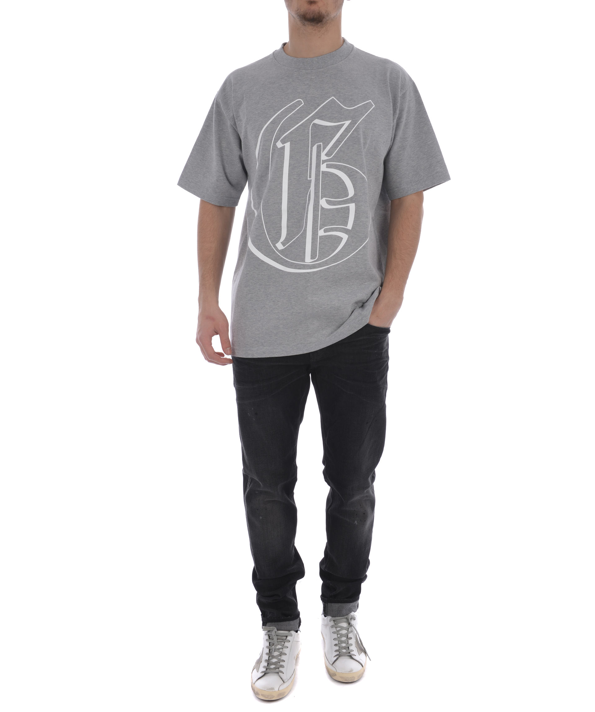 Brand Logo Print T-shirt from Golden Goose: Grey Brand Logo Print T-shirt with crew neck, short sleeves and straight hem.