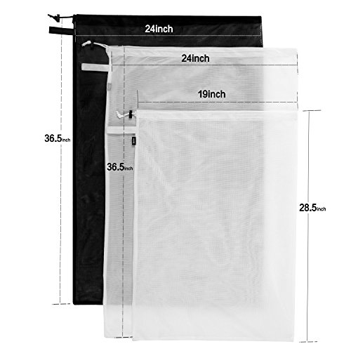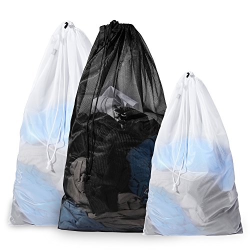 Bagail Set of 3 Sturdy Mesh Laundry Bag - 2 Extra Large&1 Large with Drawstring Closure for College, Dorm and Apartment Dwellers