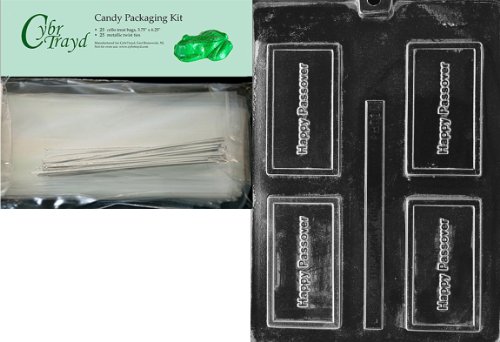 Cybrtrayd "Happy Passover" Business Card Chocolate Candy Mold with Packaging Bundle of 25 Cello Bags, 25 Silver Twist Ties and Chocolate Molding Instructions