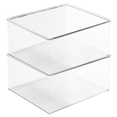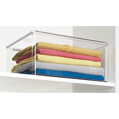 -. Title : mDesign Plastic Closet Organizer Clothing Storage Box with Lid for Shirts, Sweaters, Pants - Pack of 2, 7" High, Clear