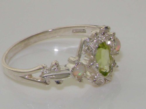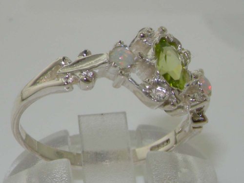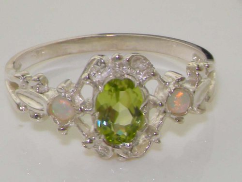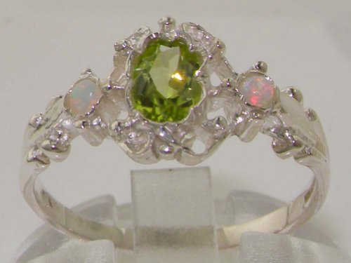 -. Feature : Made in England / Natural Peridot & Opal / Real Solid Sterling Silver / Sizes 4 to 12 Available including quarter and half sizes / Supplied in a FREE Luxury Ring Box